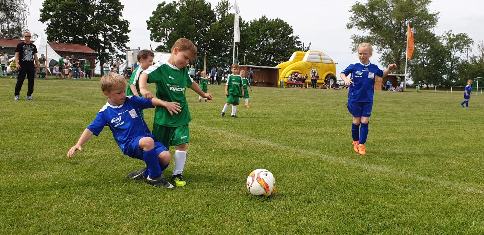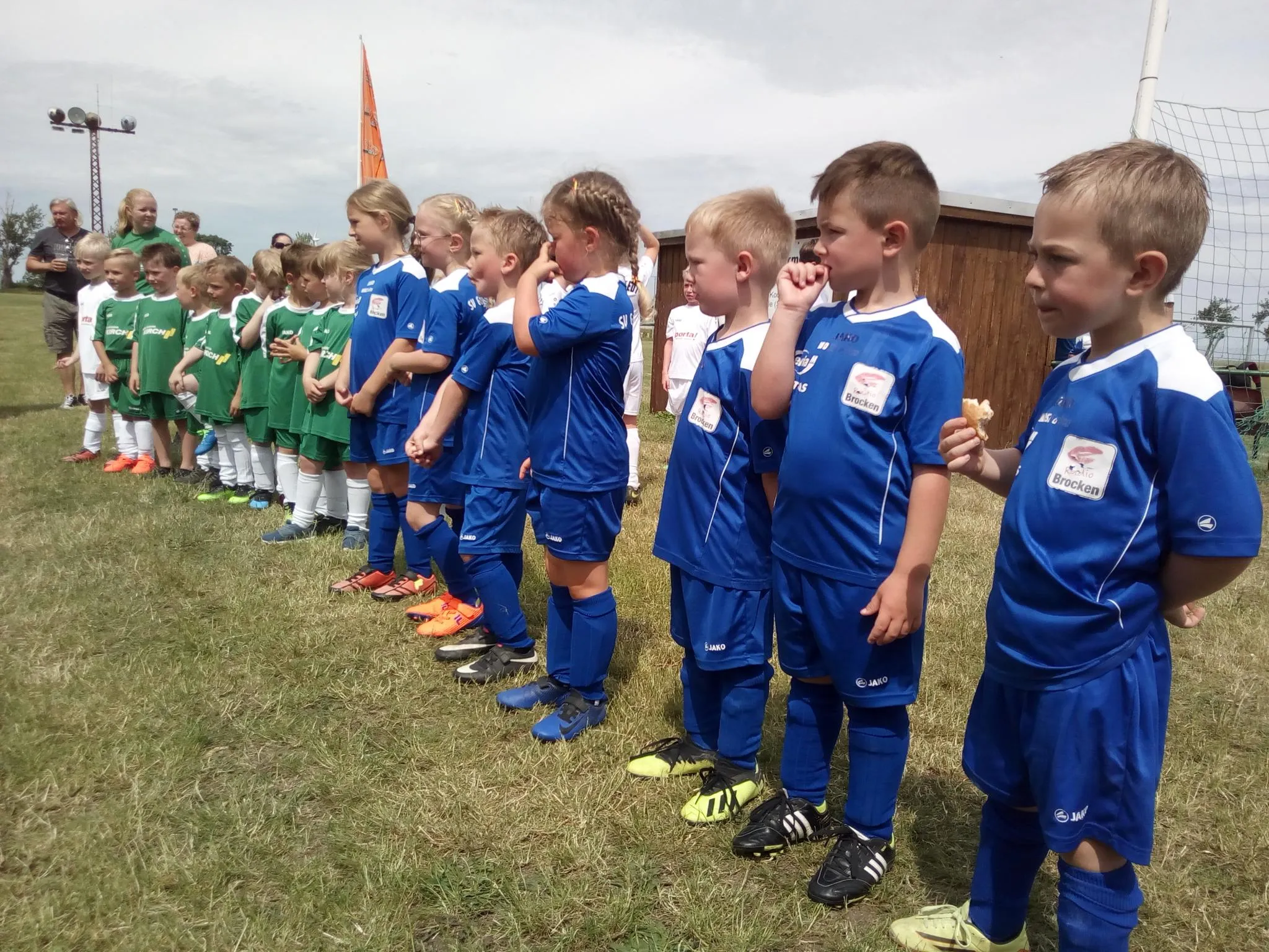 Am Pfingstmontag reisten unsere G2-Junioren nach Höhnstedt zum drei Mal zehnminütigen Freundschaftsvergleich mit der neuformierten Höhnstädter Bambiniauswahl. Von diesen bestritten viele Akteure ihr erstes Spiel. Die Rahmenbedingungen dafür waren hervorragend: Ein gut preparierter Platz, herrliches Wetter und eine passable Zuschauerkulisse.