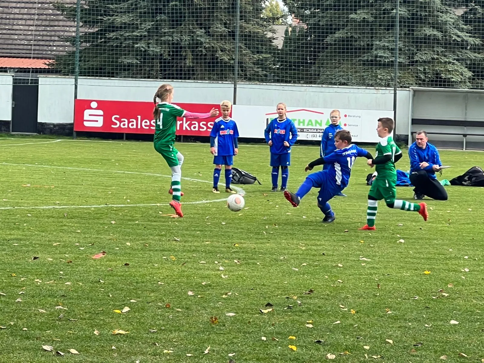 Im Nachbarschaftvergleich mit dem SV Grün-Weiß Langeneichstädt präsentierte sich unsere F1 in neuen Trikots aus der Gewinnspielaktion des Möbelhauses Roller.