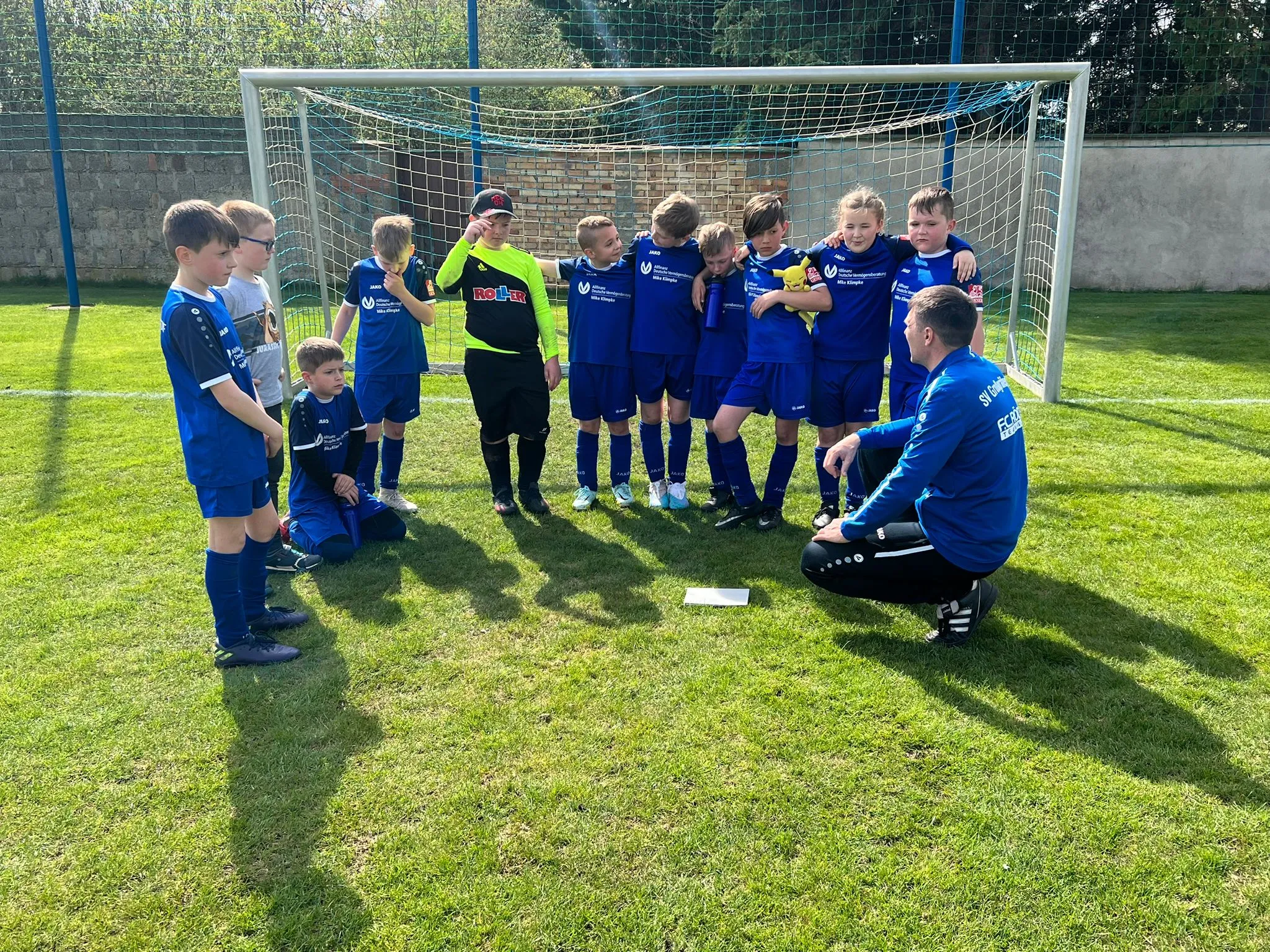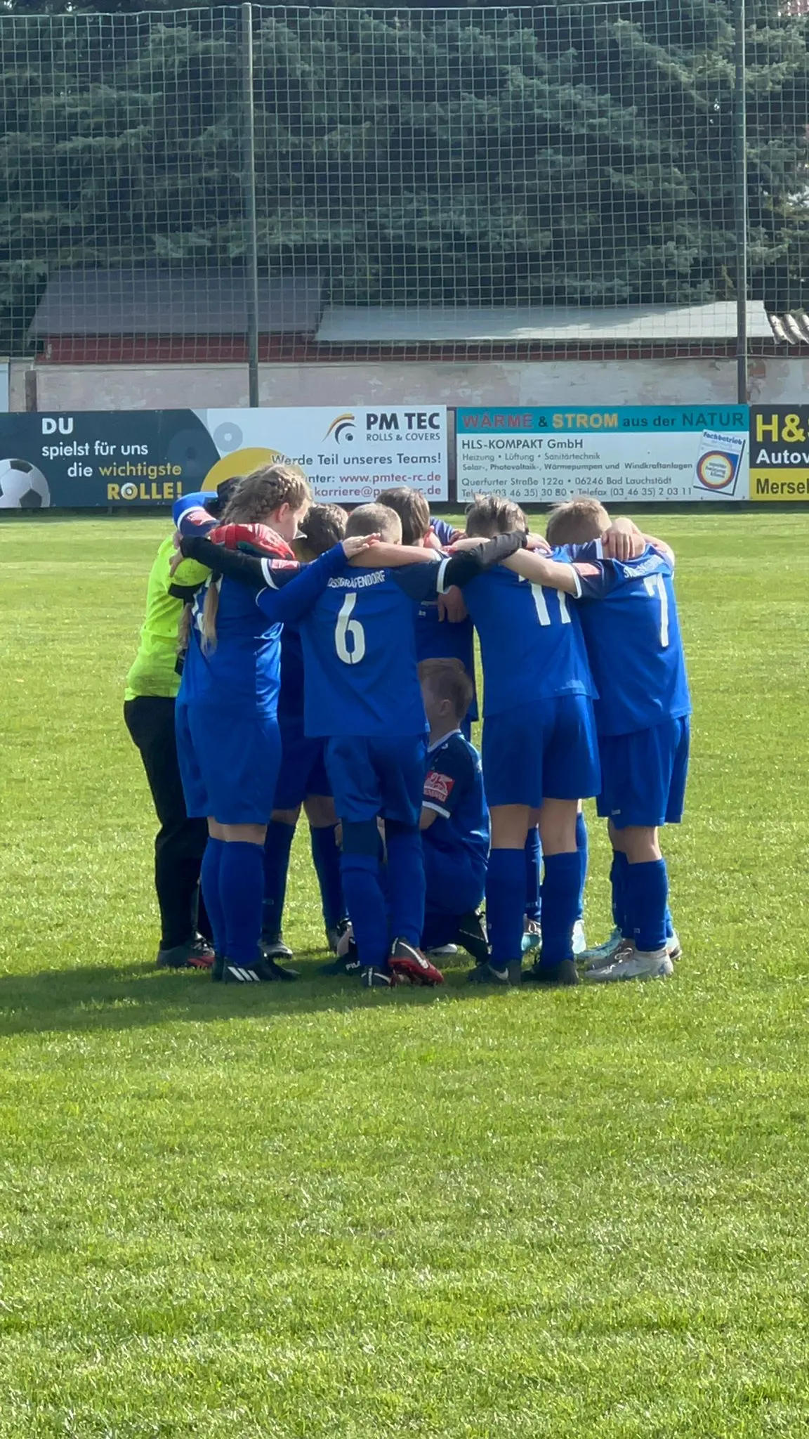 Nach dem "müden" Kick gegen die JEG HETZ am Vorabend, war unsere F1 eine Nacht später wie ausgewechselt, zeigte sich von Beginn an hellwach, lauffreudig und vor allem hoch motiviert. Nach dem frühen Führungstreffer durch Julian fighteten beide Teams klasse und zeigten eine ausgeglichene Partie. Obgleich unsere F1, u.a. mit zwei Lattentreffern, die klareren Chancen hatte, konnte Teutschenthal Mitte der zweiten Halbzeit mit einem platzierten Weitschuss ausgleichen. Wie schon im Hinspiel entschied unsere F1 das Spiel im letzten Spielviertel. Ein Wembley-Tor Julians und ein Treffer Marlons machten den Sieg perfekt.