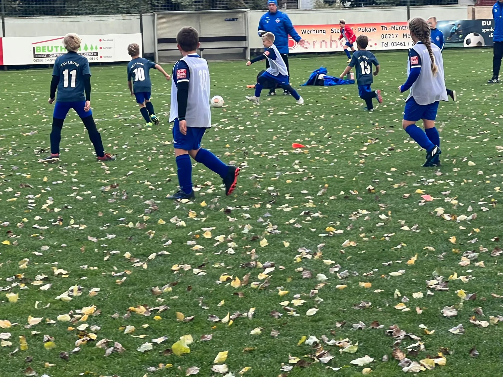 Wenngleich die Zuschauer von Beginn an sahen, dass die Heimacht körperlich und von der Spielanlage her schon ein Jahr weiter ist, schlug sich das junge, talentierte Leunaer Team wacker und bot unserer F1 in Halbzeit eins ordentlich Paroli.
