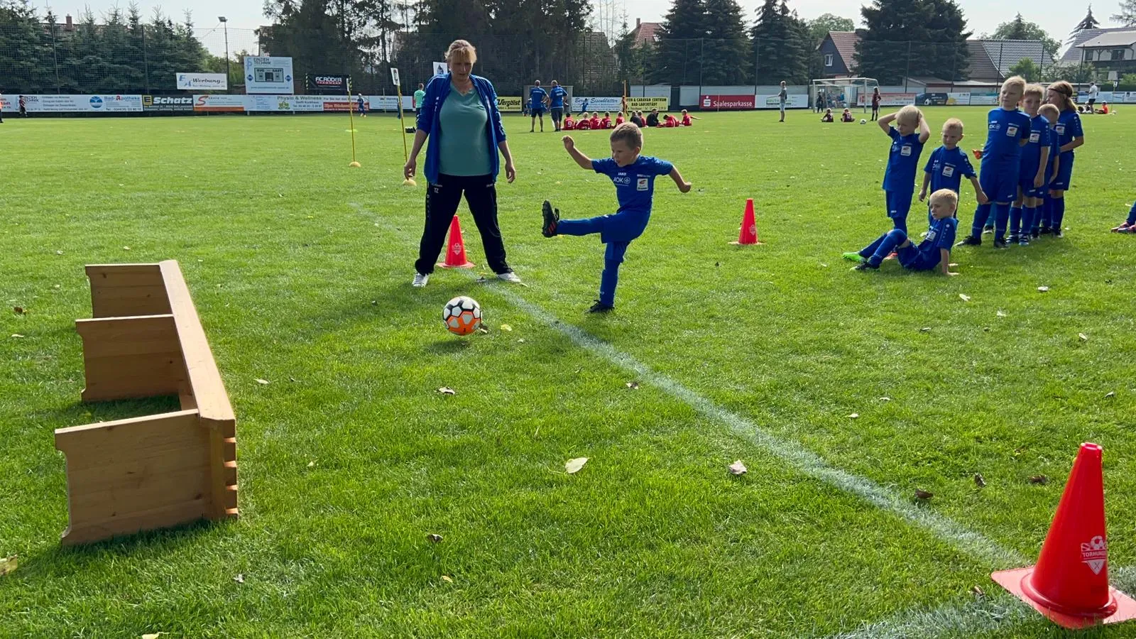 Zunächst legten die Kids beider Mannschaften erfolgreich das DFB-Paule-Schnupperfußballabzeichen ab.