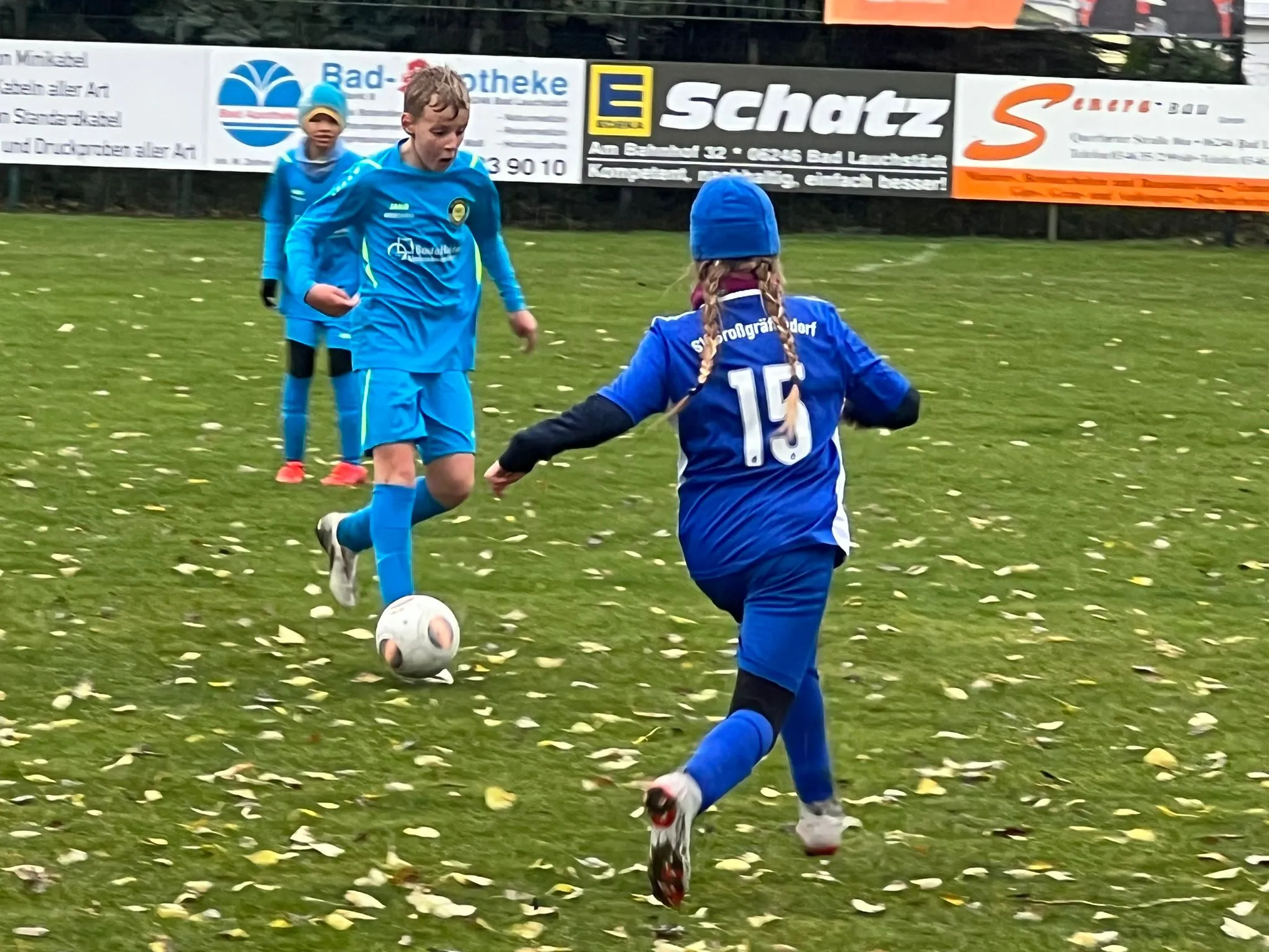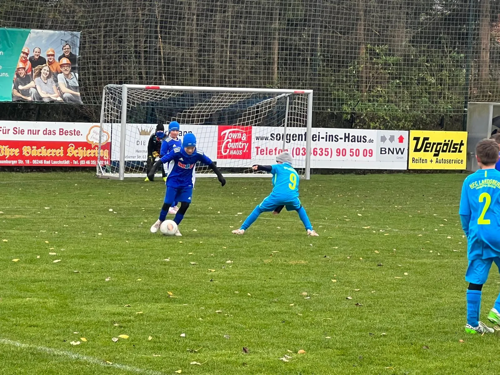 Im zweiten Spielabschnitt steigerte sich unsere E2 nochmal und Luis musste nur eine Glanzparade zeigen, um einen weiteren Gegentreffer zu verhindern. Auf der anderen Seite konnte der NFC-Keeper Bens Weitschuss nicht festhalten, allerdings blieb der Ball vor der Linie liegen. Das war der Beginn einer Drangphase unserer E2, wobei aussichtsreiche Einschussmöglichkeiten immer wieder von der vielbeinigen NFC-Defensive abgeblockt werden konnte.
