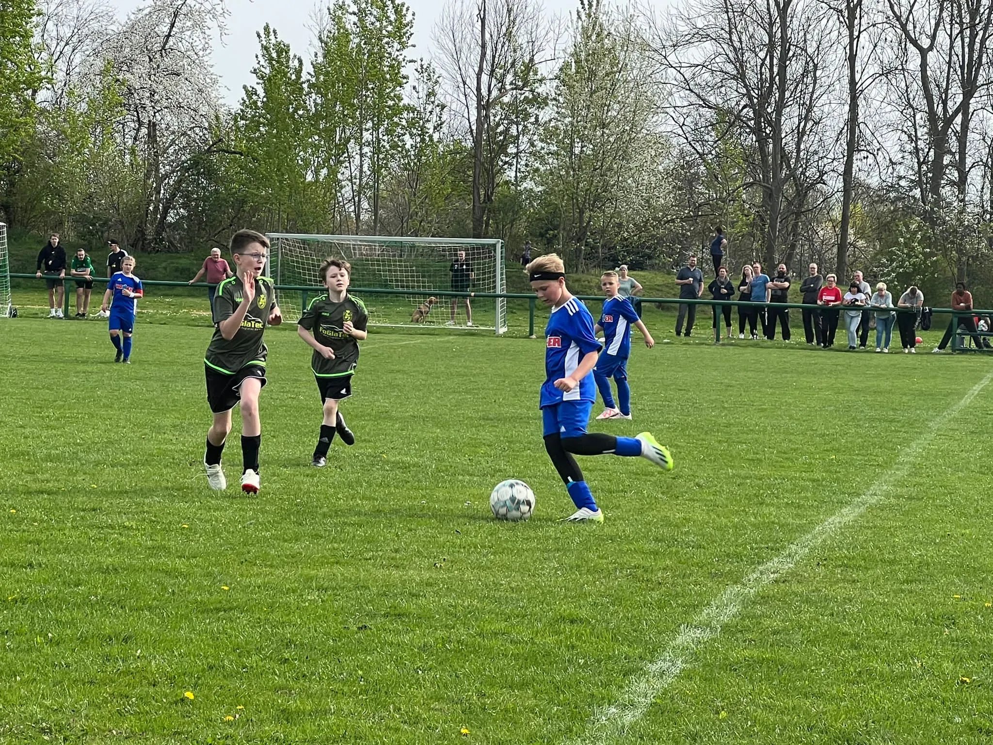 In der zweiten Halbzeit zeigten beide Teams eine gute Defensivleistung. Wieder war es der VfL, der früh in Führung ging. Die Uhr tickte nun für die Gastgeber, aber unsere E2 versuchte den wiederholten Ausgleich zu erzielen. Dreh- und Angelpunkt in der Offensive war in dieser Phase Moritz, der viele gefährliche Freistöße auf das Tor brachte. Er war es auch, der in der Schlussphase mit einem Fernschuss das 2:2 erzielte (46.). Nun wollte unsere E2 die drei Punkte. Den lucky punch setzte Dean, der in der Nachspielzeit einen Eckball von Moritz über die Linie drückte.