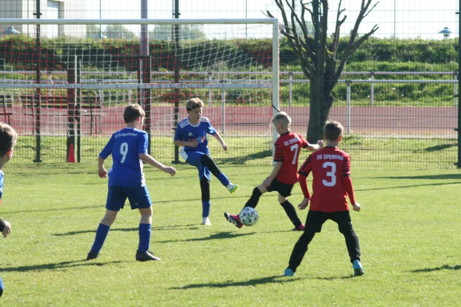 Spergau kam besser aus der Halbzeit und belohnte sich in der 28. Minute mit der 1:0 Führung. Das rüttelte unsere E2 wach und die eigenen Chancen mehrten sich wieder. Die beste hatte Marlon, der erst den rechten und im Nachschuss den linken Innenpfosten traf. Kurz vor Schluss setzte sich Moritz R. auf links gegen zwei Gegenspieler durch und flankte scharf in den Strafraum auf Anton, der zum viel umjubelten Ausgleich einnetzte.