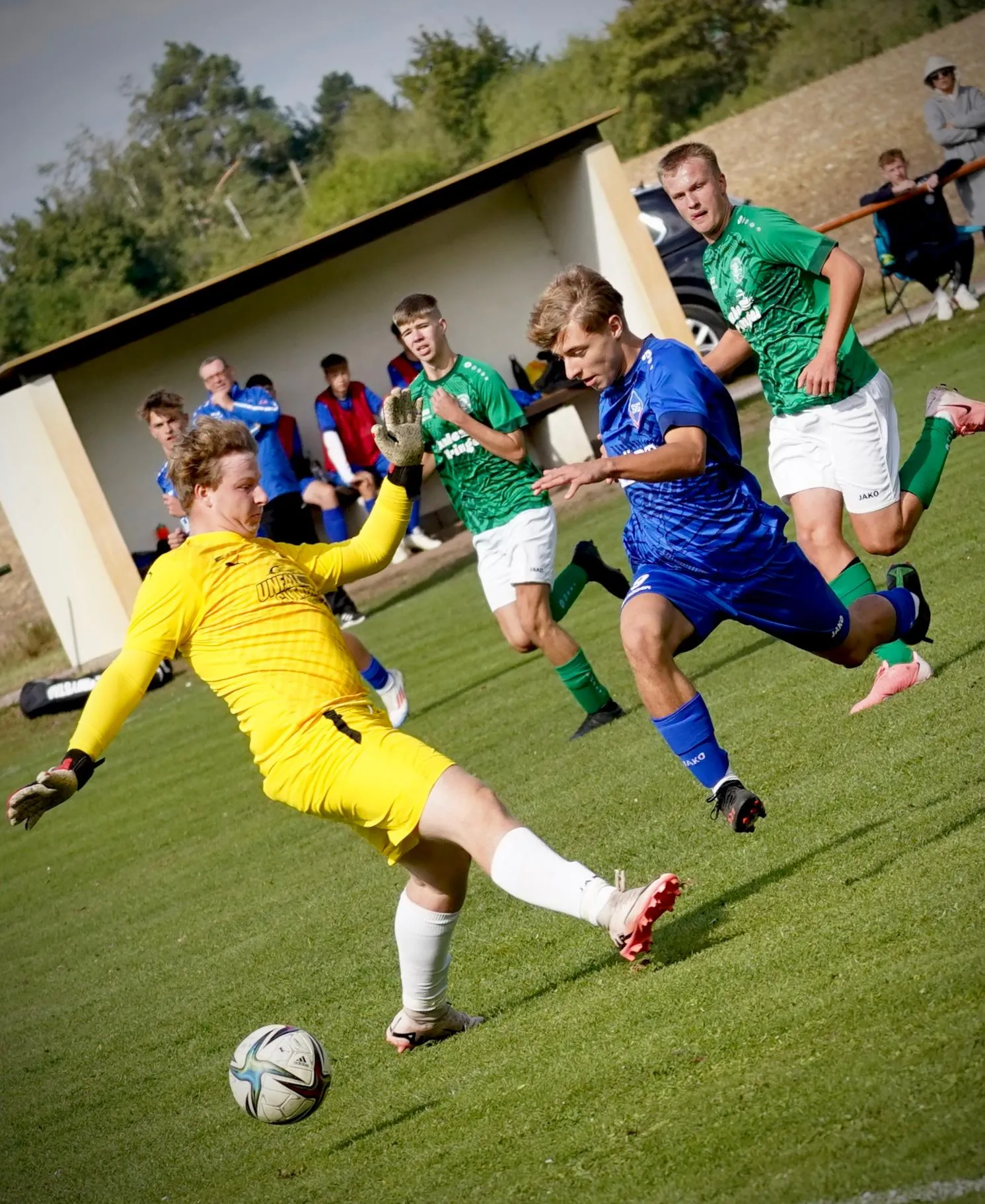 Auf dem gepflegten Lieskauer Rasen verdiente sich unser Team die Pausenführung gegen einen gut eingestellten Kontrahenten, jedoch ohne zu überzeugen. Nach dem Seitenwechsel ließen unsere Jungs zunächst Chancen im Minutentakt liegen. Aber anstatt das Ergebnis deutlich auszubauen, folgten ab Minute 57 einige Slapstick-Einlagen der Extraklasse. Mit viel Mühe wurde dann aber doch der Dreier gesichert.