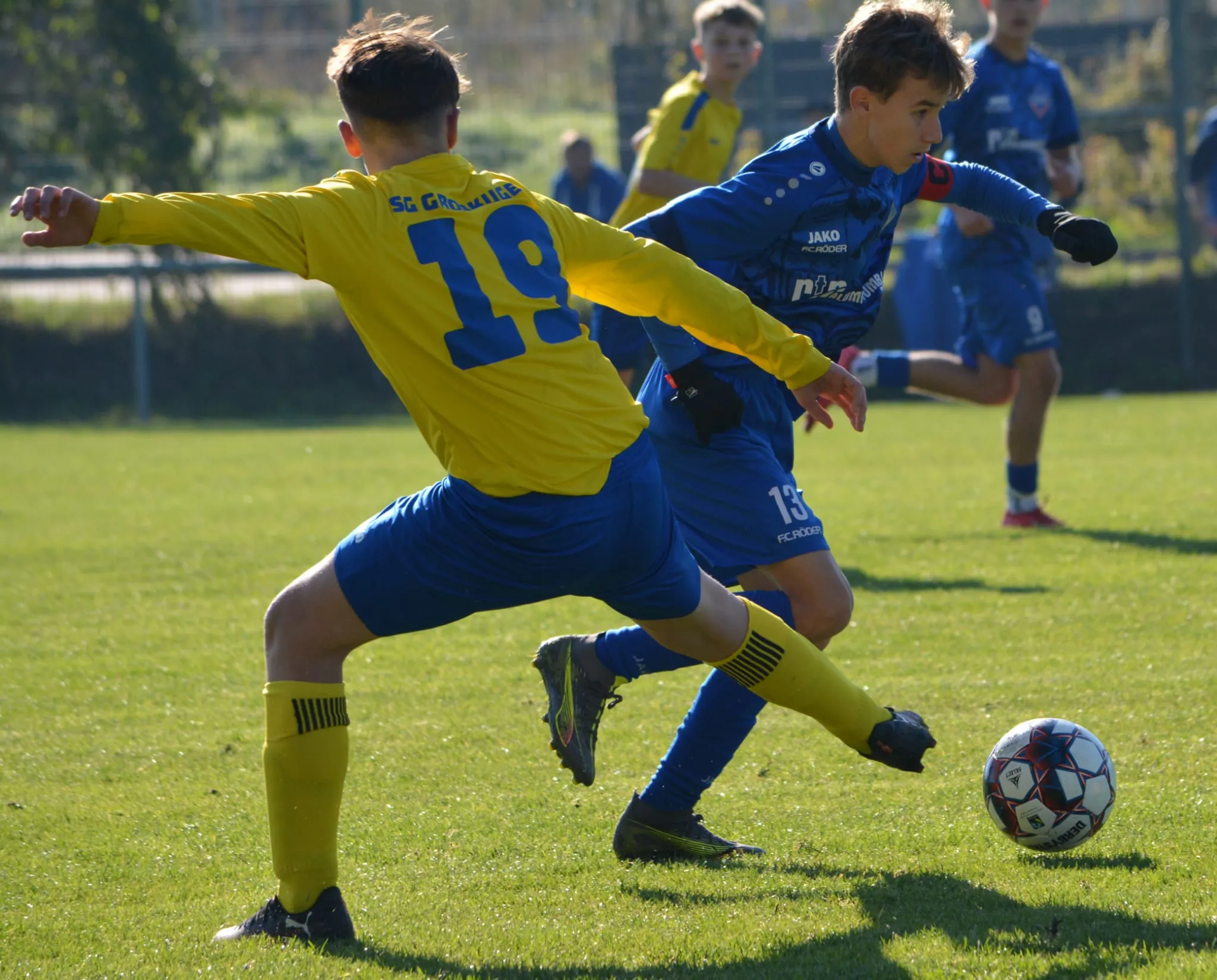 Am Tag der Deutschen Einheit reisten unsere Kids Frühmorgens und bei eisigen Temperaturen zum Pokalspiel nach Großkugel. Im Achtelfinale ging es gegen das Team des FSV Raßnitz, welches man konzentriert und motiviert für sich entscheiden wollte. Nach einer intensiven Erwärmung starteten wir relativ gut in die Partie und konnten gleich eine der ersten Chance durch Ole (3.) verwerten. Raßnitz kam oftmals nur durch lange Befreiungsschläge aus der eigenen Hälfte. Einen hiervon musste Oskar in der 8. Minute, mit einer starken Grätsche zur Ecke klären. Zur Verwunderung aller, gab es diese jedoch nicht, da der Schiedsrichter auf den Elfmeterpunkt zeigte. Eine äußerst fragwürdige Entscheidung, welche nicht die einzige in dieser Partie bleiben sollte. Diese Einladung aus 11 Metern zu netzen, ließen sich die Gastgeber nicht nehmen und stellten das Spiel auf 1:1.