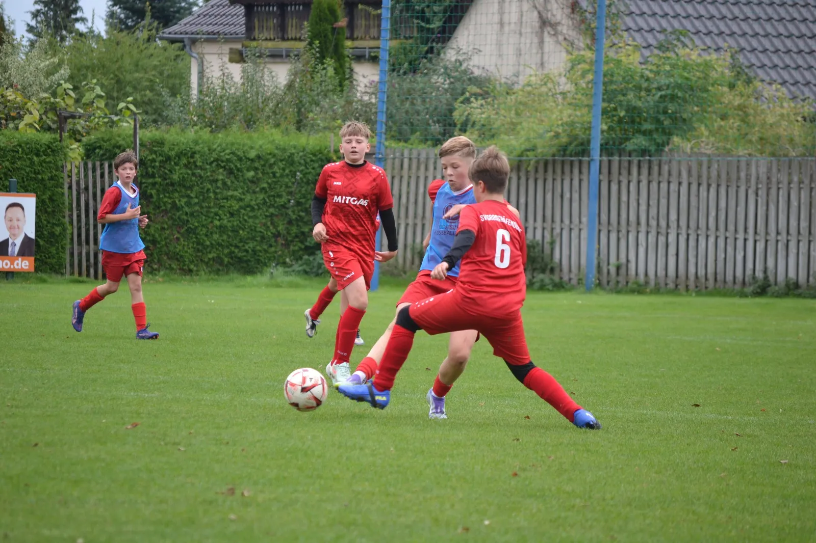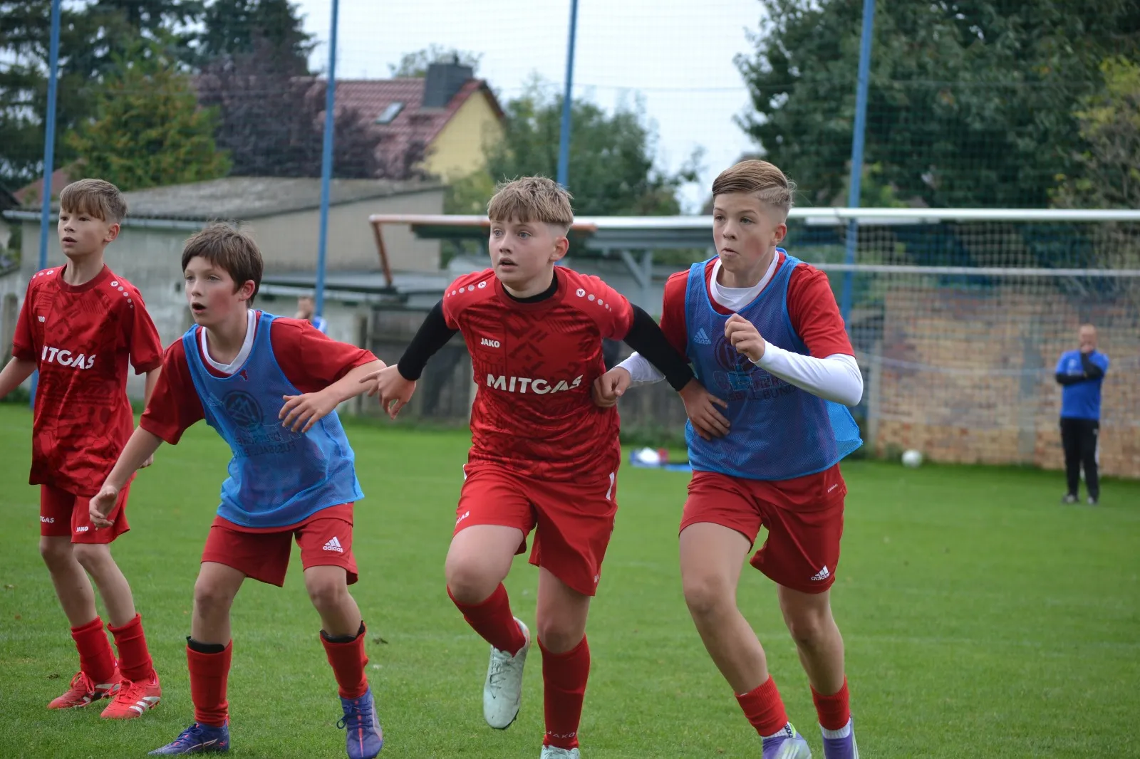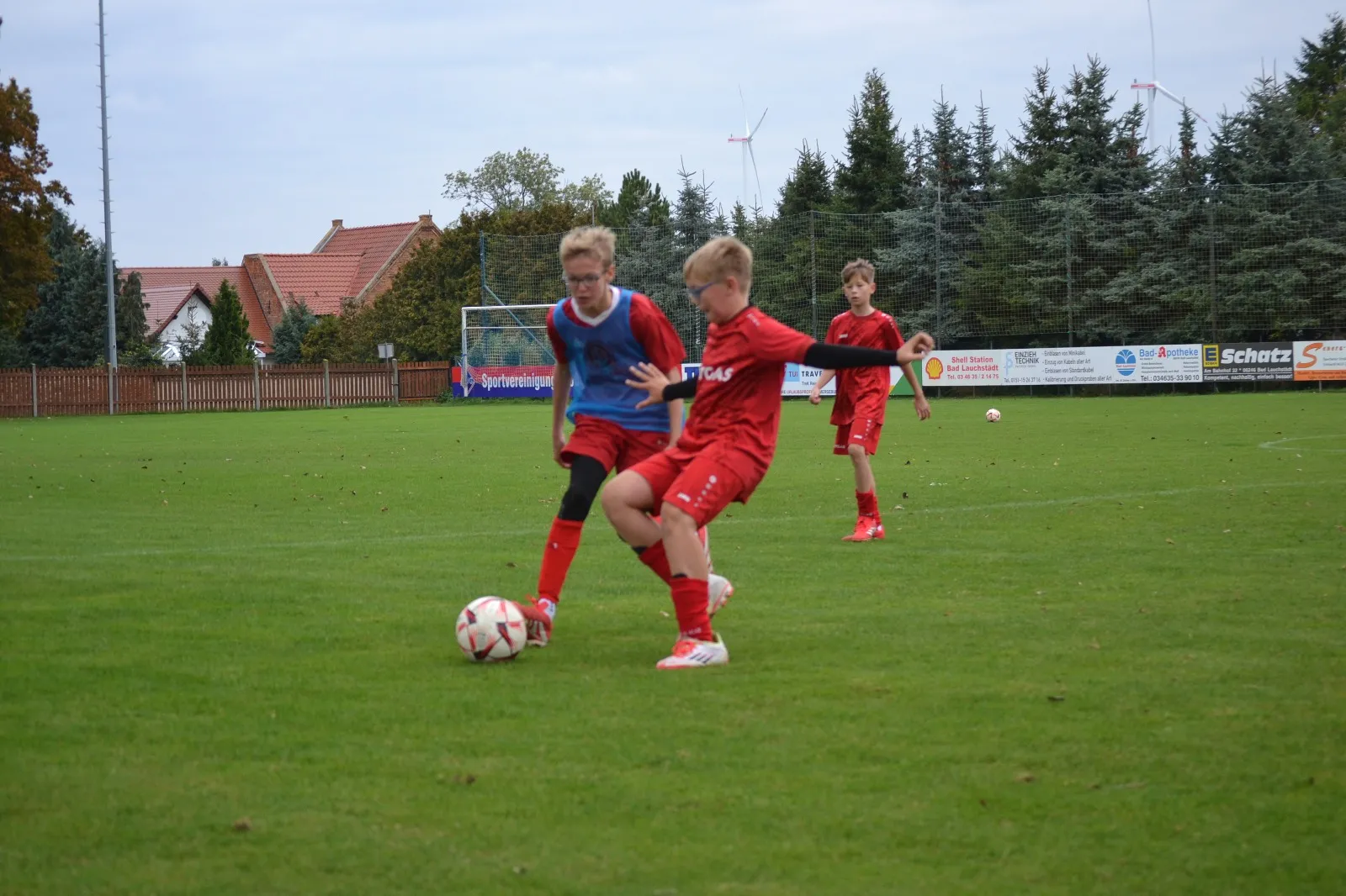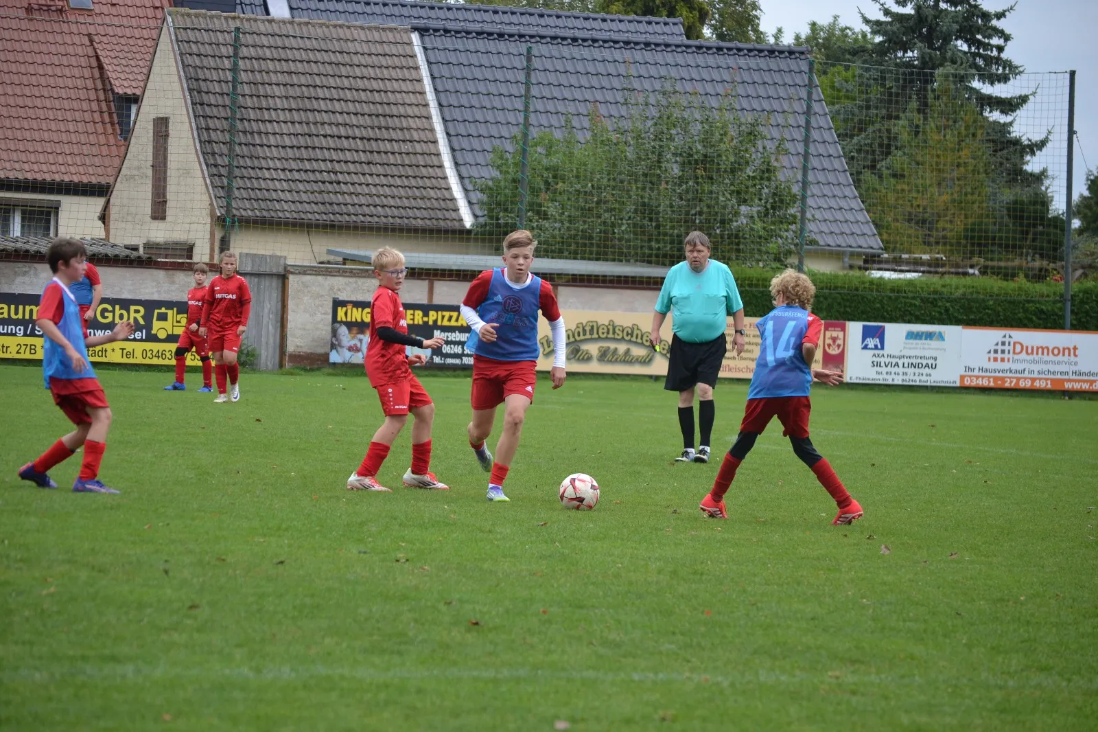 Von Beginn an entwickelte sich ein Spiel auf Augenhöhe. Die erste Großchance verzeichnete die D1 als Lukas freistehend über das Tor schoss (10.). Auf der anderen Seite schoss Julian einen Freistoß vor den Pfosten (14.). So ging es bis zur Pause hin und her, aber beide Torhüter hielten ihren Kasten sauber.