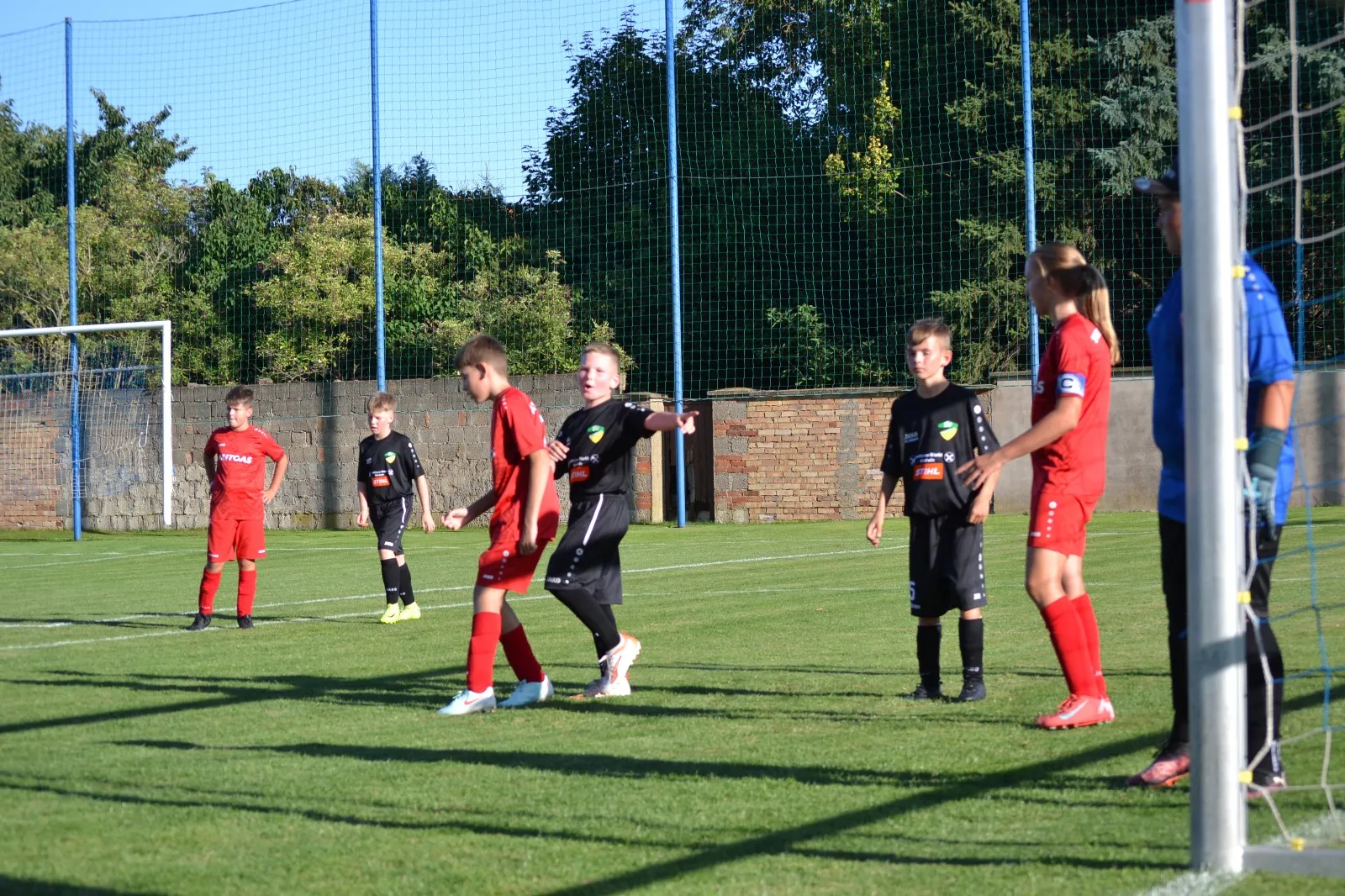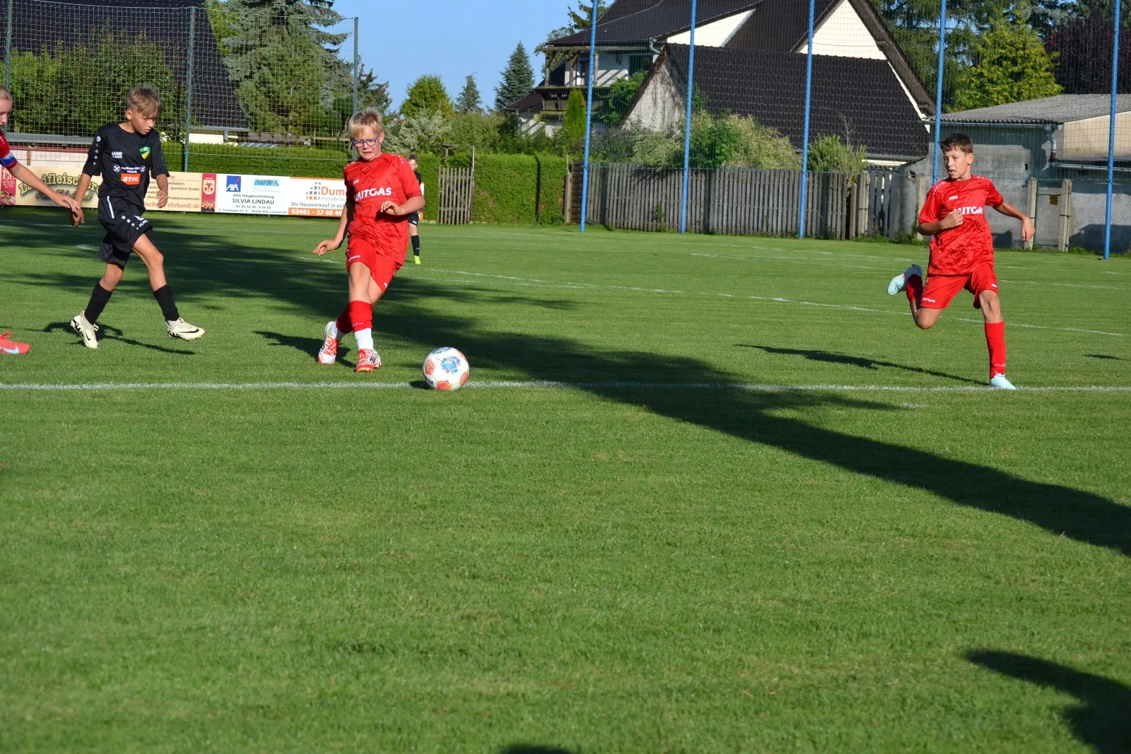 In der Ausscheidungsrunde des Kreispokals gastierte der SV Braunsbedra in Großgräfendorf. Das Spiel startet furios. Braunsbedra hatte die erste Großchance. Danach häuften sich die Möglichkeiten unserer D2. Nach starker Spieleröffnung von Klara, wehrte der SVB-Keeper Moritz R. scharfe Hereingabe nach vorn ab, wo Marlon blitzschnell reagierte und zum 1:0 einschoss. Moritz R. hämmerte einen indirekten Freistoß, nach Aufnahme eines Rückpasses, zum 2:0 in die Maschen. In der Folge verpasste es unsere D2 das Spiel zu entscheiden. Der SVB gab das Spiel noch lange nicht verloren, markierte noch vor der Pause den Anschlusstreffer und drehte in der Anfangsviertelstunde der 2. Halbzeit das Spiel. Die kurze Trinkpause kam wie gerufen. Anschließend brachte der schönste Spielzug den 3:3 Ausgleich, eingeleitet von Anton, zum Höhepunkt gebracht von Marlon und vollendet von Dean. Jener war es auch, der zwei Minuten später einen Freistoß von Moritz R. im Nachsetzen zur erneuten SVG-Führung einnetzte. Wiederum zwei Minuten später zeigte Klara einmal mehr eine tolle Spielübersicht und Anton bedankte sich mit dem 5:3. Aber auch hier gaben sich die Braunsbedraer noch lange nicht geschlagen und machten das Spiel fünf Minuten vor Abpfiff wieder spannend - 5:4. Nach dem Abpfiff war der Jubel auf SVG-Seite groß!