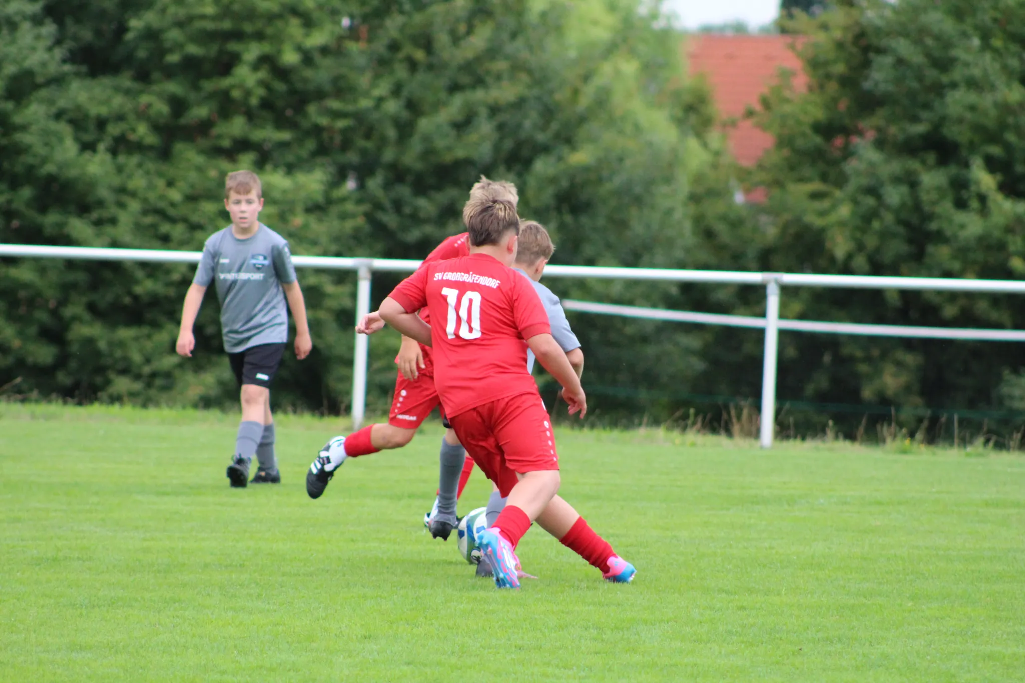Zu Ihrem ersten Testspiel folgte unsere D2 der Einladung der JSG Einheit Aue 2 nach Günthersdorf. Da aufgrund der Ferienzeit nur die halbe Mannschaft zur Verfügung stand, unterstützten 5 Kids der E1 unsere 2014er. Gespielt wurden 3x 20 Minuten.