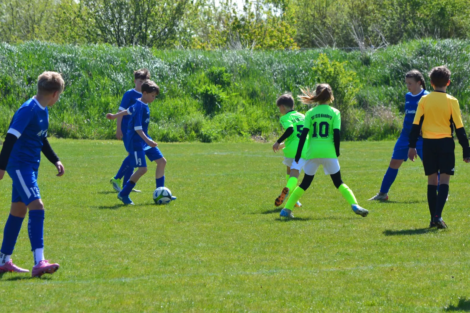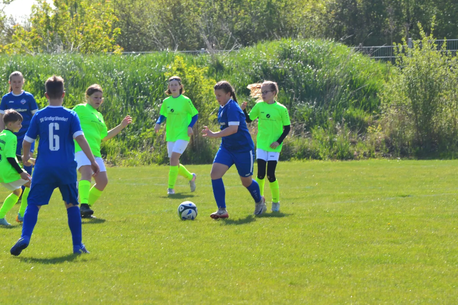 Offensiv ausgerichtet schnürrte man die Gastgeber von Beginn an in deren Hälfte ein und erspielte sich eine Vielzahl an Abschlussmöglichkeiten. Dabei fehlte allerdings zumeist die Kaltschnäuzigkeit, den Ball einfach flach ins Eck einzuschieben, anstatt zwei Dutzend Abschlüsse über das Tor oder auf die Niemberger Torfrau zu hämmern. In der 21. Minute war es Helena, die den Ball endlich im Tor unterbrachte, ehe Klara kurz vor der Pause auf 0:2 erhöhte.
