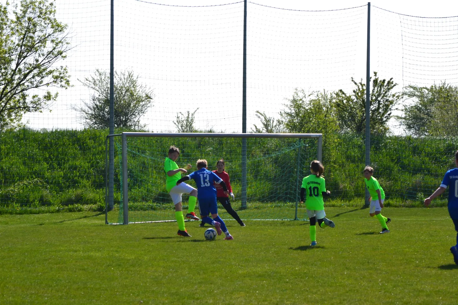 Im zweiten Spielabschnitt ging es weiterhin fast ausschließlich in eine Richtung. Gregor erzielte den dritten Treffer, ehe Chris aus der eigenen Hälfte ein Solo startete, einnetzte und seinen ersten Freilufttreffer bejubelte. Moritz mit der Hacke und Marlon mit dem Außenrist zeichneten für die Treffer fünf und sechs verantwortlich. In der Schlussphase schnürrten Helena und Chris ihren Doppelpack und stellten damit den Endstand her 0:8.