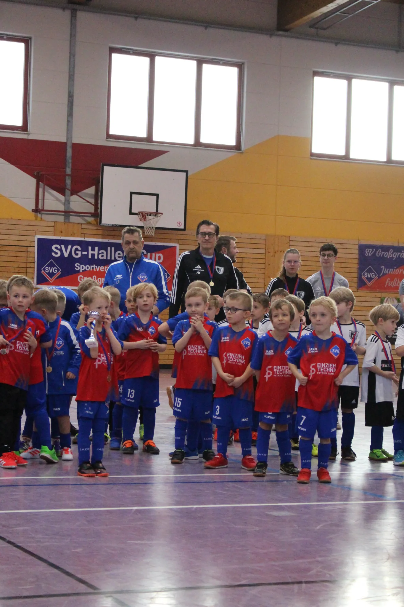Den Turniersonntag des 17. SVG-Hallen-Cups eröffneten die G-Junioren. Die sechs teilnehmenden Teams spielten im Modus "Jeder gegen Jeden" um den Siegerpokal.