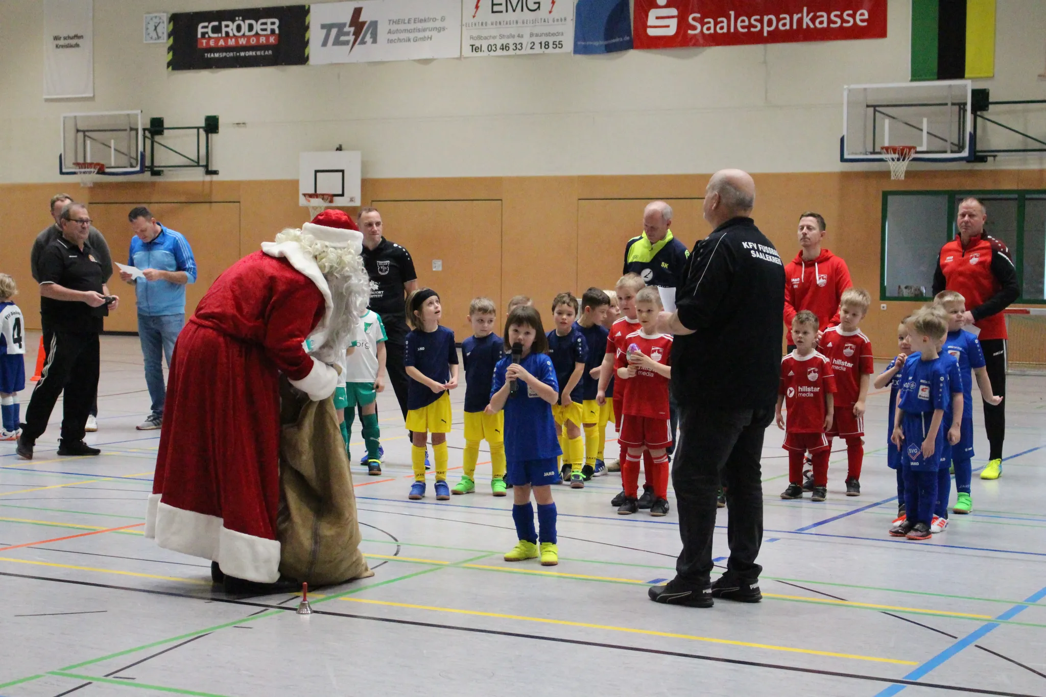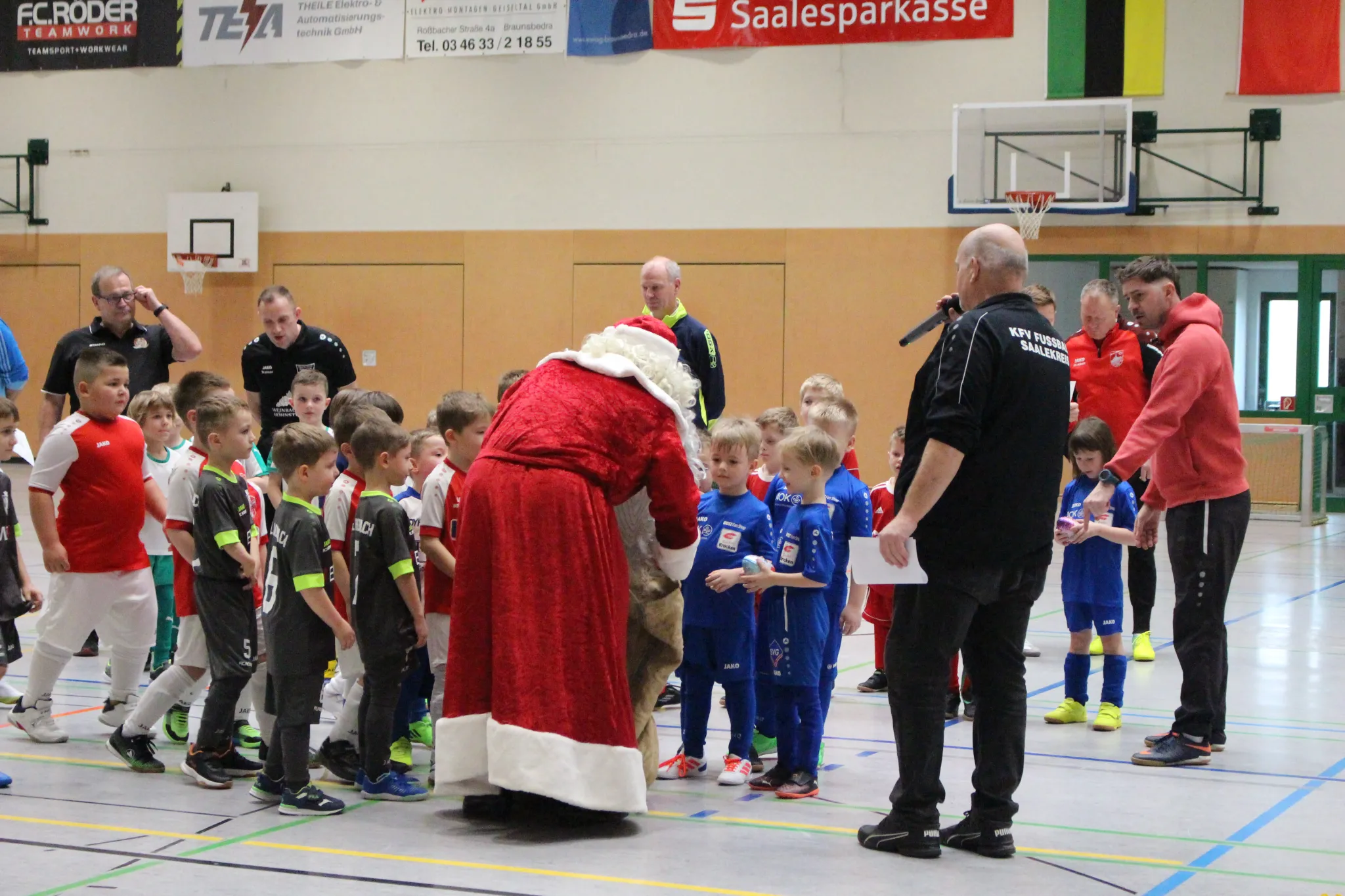Natürlich stattete auch der Weihnachtsmann den Kindern bei beiden Turnieren einen Besuch ab und bescherrte sie.
