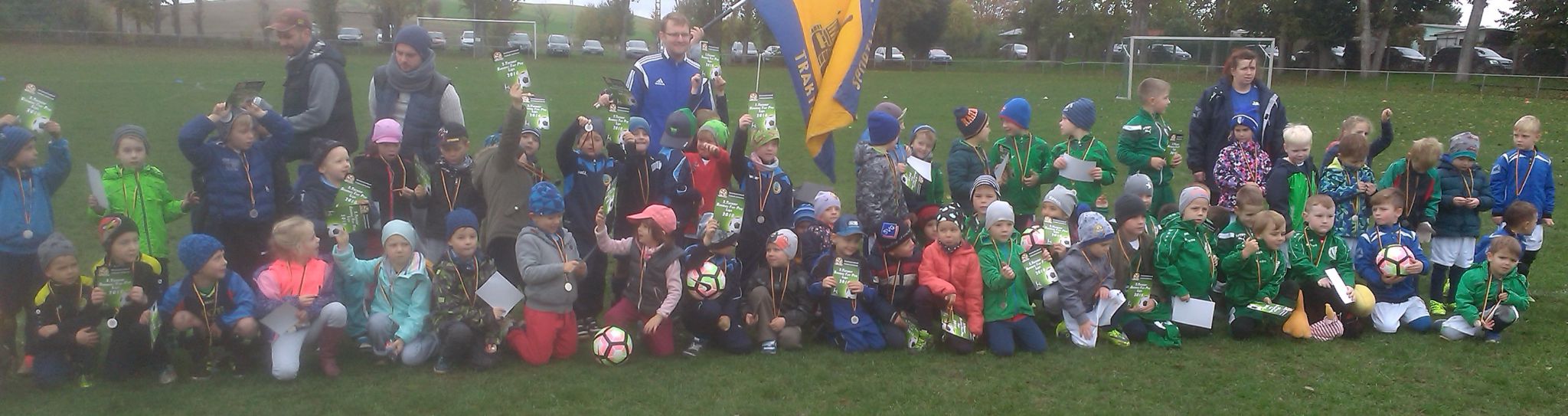 Am Samstag, den 29. Oktober nahmen unsere Bambini am 2. Fair Play Turnier des KFV Saalekreis in Teicha teil. Da viele das verlängerte Wochenende für einen Kurzurlaub oder Ausflug nutzten und dazu noch ein paar kurzfristige Absagen das Team dezimierten, standen gerade einmal sieben von 27 Spielern zur Verfügung. Von diesen sieben tapferen Zwergen durften heute drei ihre Premiere zwischen den Pfosten feiern.