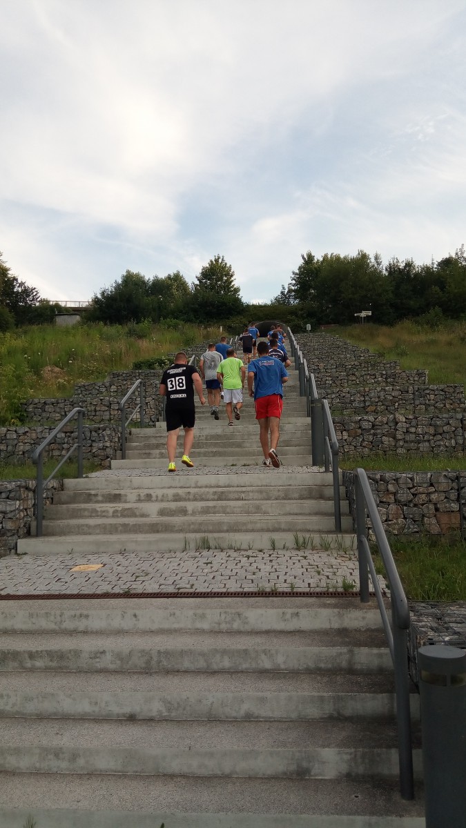 Gestern nun erfolgte der Auftakt zur Sommervorbereitung. Um etwas Abwechslung in den Trainingsalltag zu bekommen, wählte Heiko dafür die sehr idyllische Landschaft am Geiseltalsee aus. Ein voller Erfolg. Denn neben der allgemeinen Ansehnlichkeit bietet das Areal auf Grund seiner unterschiedlichen Höhenlagen hervorragende Bedingungen, um eine Mannschaft auf das notwendige konditionelle Level zu heben. Die erste (zum anschwitzen gedachte) Einheit bestand aus 4 Teilen: 2,5 km Lauf vom Startpunkt Marina zum Strandparkplatz, Steigerungsläufe a 100 m am Berg, 2,5 km Lauf zurück zum Startpunkt und abschließend Treppenläufe an der Marina in verschiedenen Tempostufen. Nun sollte die Intensität langsam gesteigert werden, will man zum Pokalauftakt sowie dem nachfolgenden Punktspielstart "voll auf der Höhe sein".