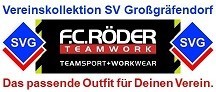 Der Vereinsvorstand freut sich, allen Mitgliedern, Fans, Sympathisanten und Unterstützern unserer Sportvereinigung Großgräfendorf mitteilen zu dürfen, dass wir mit der F.C.Röder Sport GmbH aus Freyburg einen ausgezeichneten, regionalen Kooperationspartner für die Bereitstellung unserer Vereinskollektion gefunden haben. Das lange Warten auf halbjährliche Sammelbestellungen war gestern, ab jetzt kann jeder selbst bequem online bestellen!
