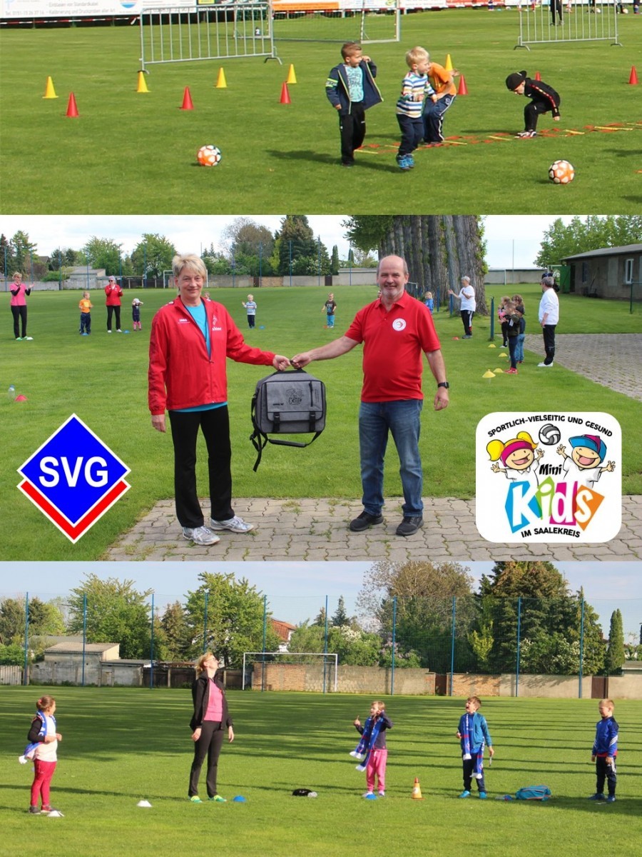 Dafür sind die Kindersportgruppen nun noch besser ausgerüstet. Denn während der Trainingseinheit überreichte der amt. Vizepräsident für Bildung, Ehrung und Traditionen des KreisSportBundes Saalekreis, Andreas Günther, im Rahmen des Förderprojekts Minikids im Saalekreis ein Multimediapaket an die Großgräfendorfer Übungsleiterin Sabine Enke. Dieses beinhaltet unter anderem ein Tablet und eine Musikbox, um zukünftige Trainingsstunden musikalisch ausgestalten zu können. Die Großgräfendorfer Krabbelkäfer bedanken sich recht herzlich dafür!