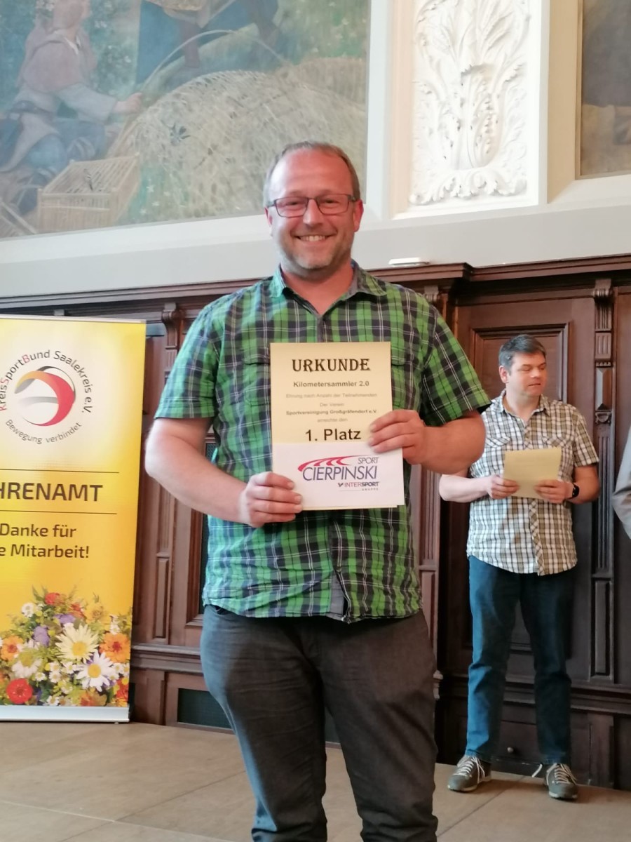Am Freitag, dem 13.05.2022 ehrte der KreisSportBund Saalekreis im Ständehaus Merseburg alle Sportlerinnen und Sportler (Senioren und Junioren), die in den Jahren 2020 und 2021 mindestens den Titel Landesmeister errungen haben bzw. in den Spieljahren 2019/20 und 2020/21 hochklassig vertreten waren. Im Rahmen der Sportlergala nahm Vorstandsmitglied Ralph Mennicke die Urkunde für die Aktivierung der meisten Teilnehmenden am Kilometersammlerwettbewerb 2.0 entgegen.