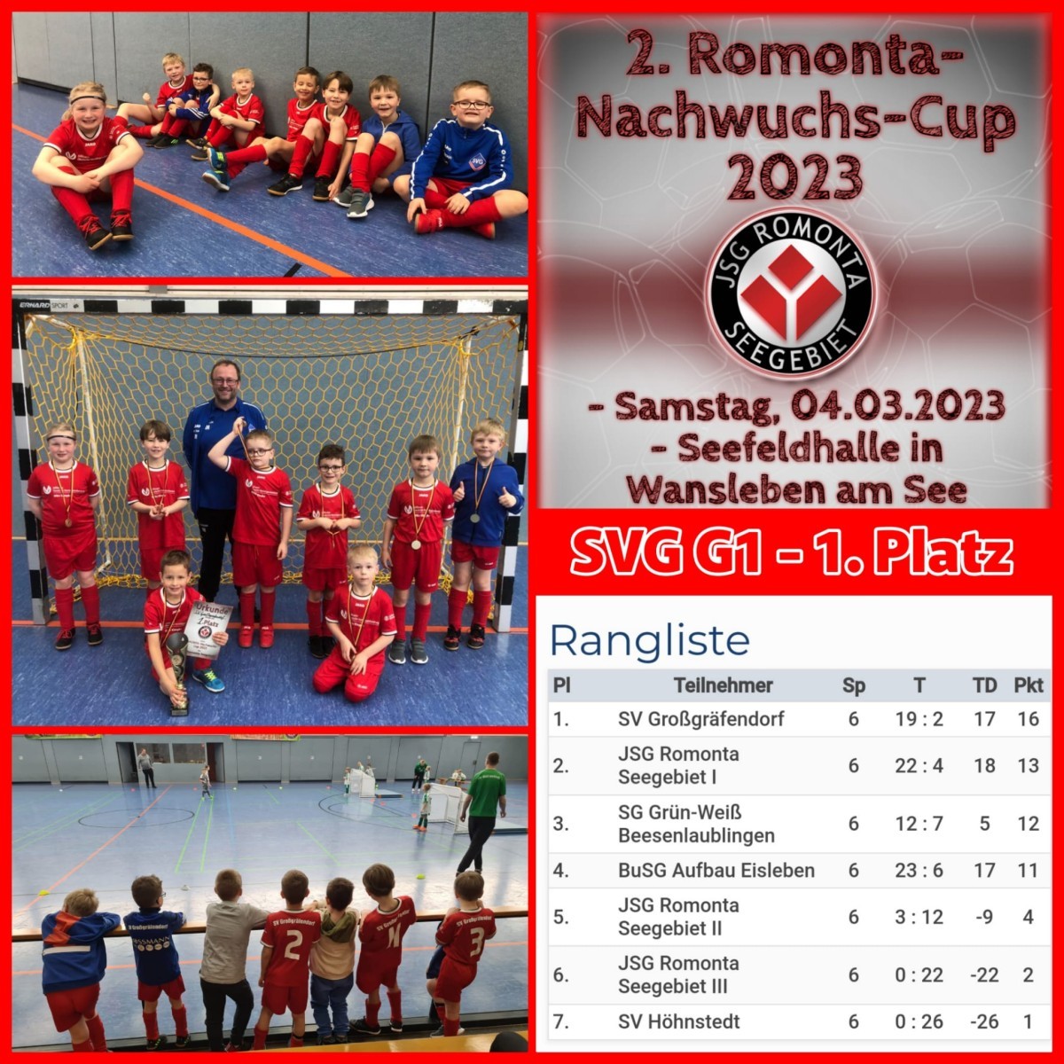 Siegreich konnte am vergangen Samstag unsere G1, zum größten Teil bestehend aus unseren berechtigten F2-Spielern, vom Romonta-Nachwuchs-Cup aus Wansleben am See zurückkehren.