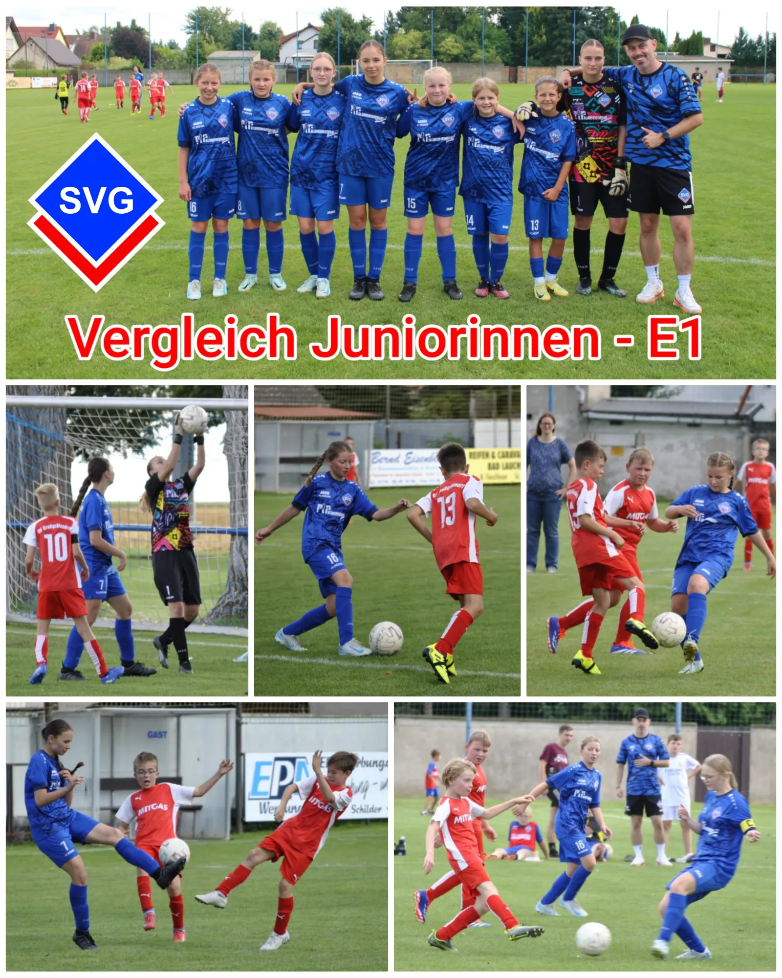 Anschließend präsentierten sich die SVG-Juniorinnen dem Sportfestpublikum im Freundschaftsvergleich mit unseren E1-Junioren. Die Mädels gewannen das Spiel knapp mit 2:1.